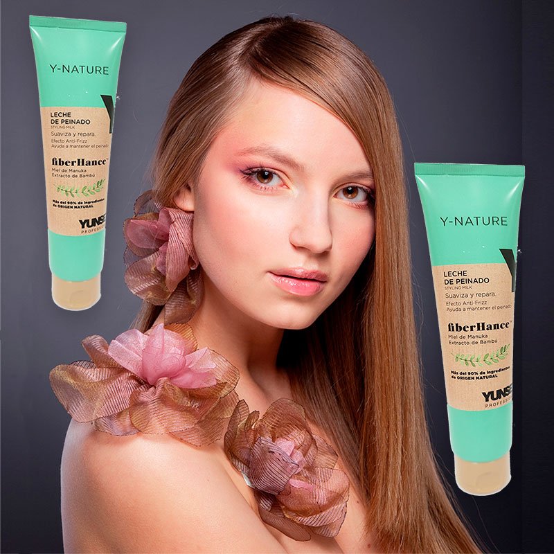 Y-NATURE, está compuesta por un Champú reestructurante (400ml.) , Acondicionador reforzante (400ml.) y Leche de peinado (150ml.), que facilita el peinado y ayuda a mantenerlo.
